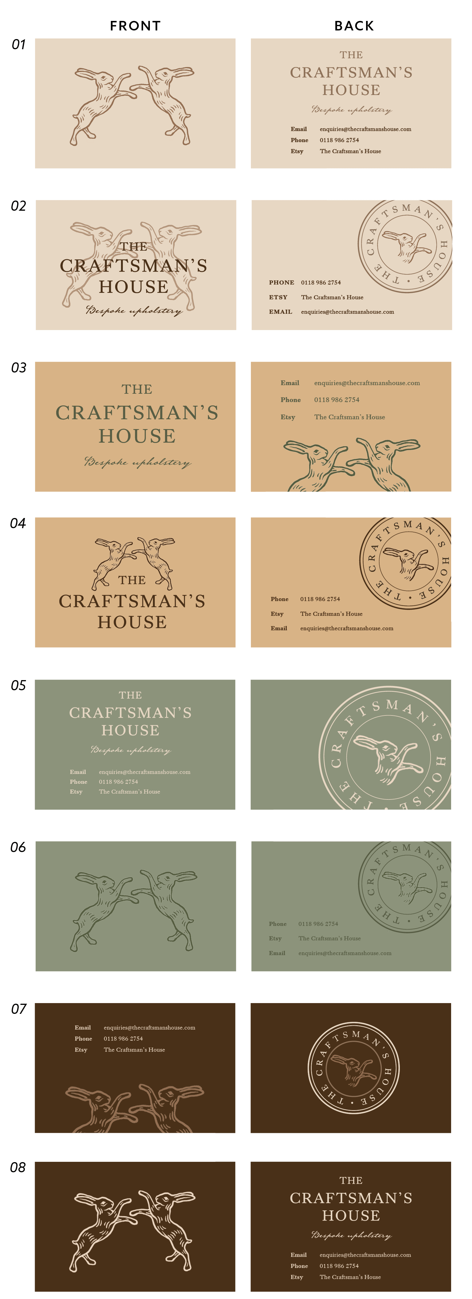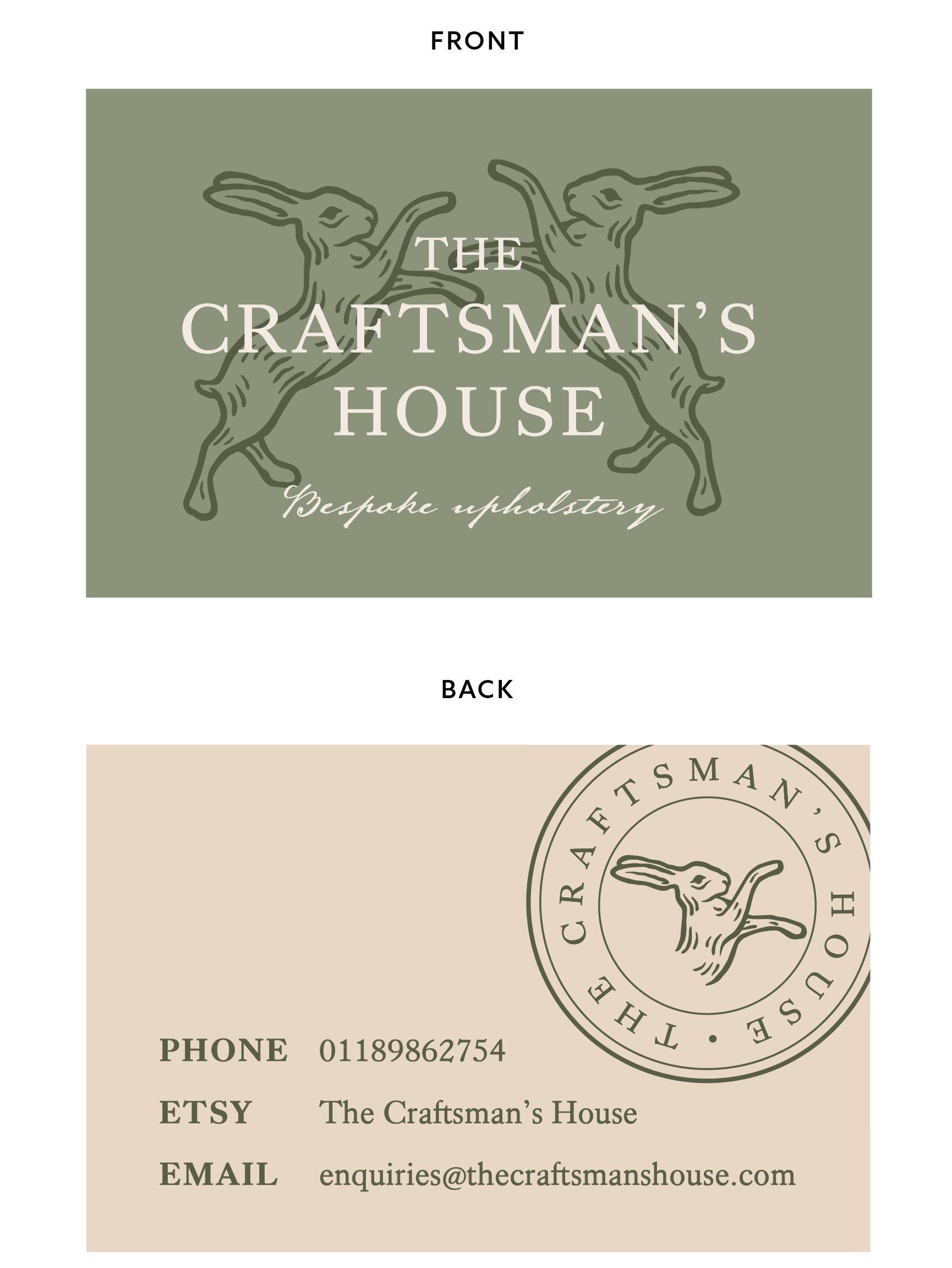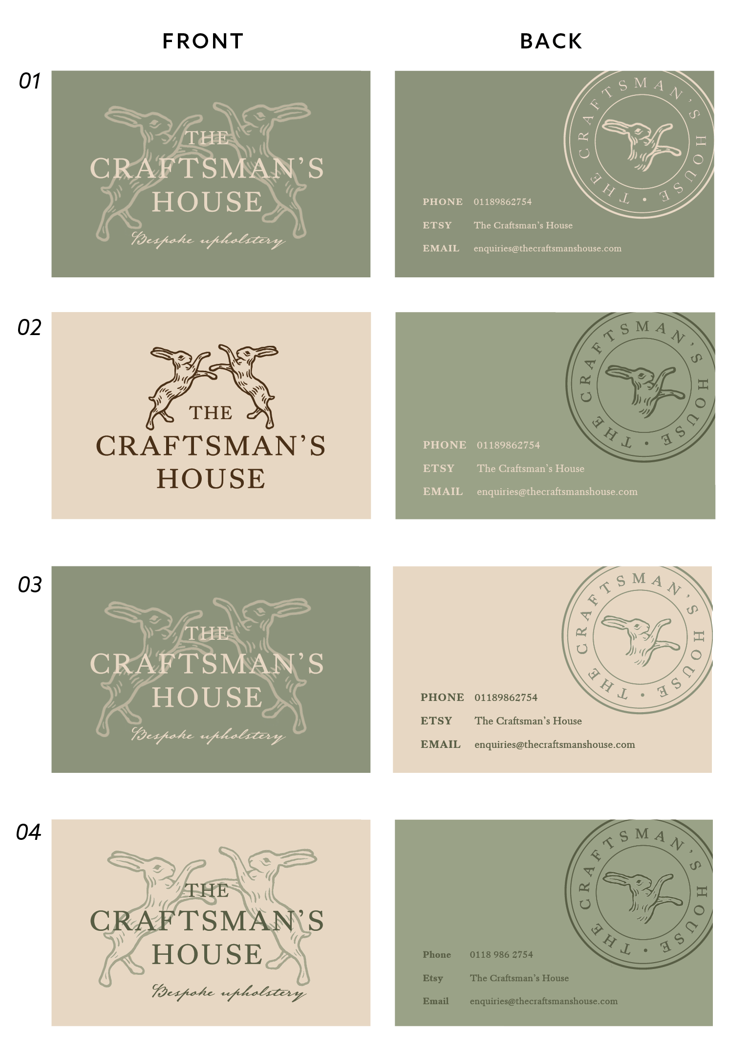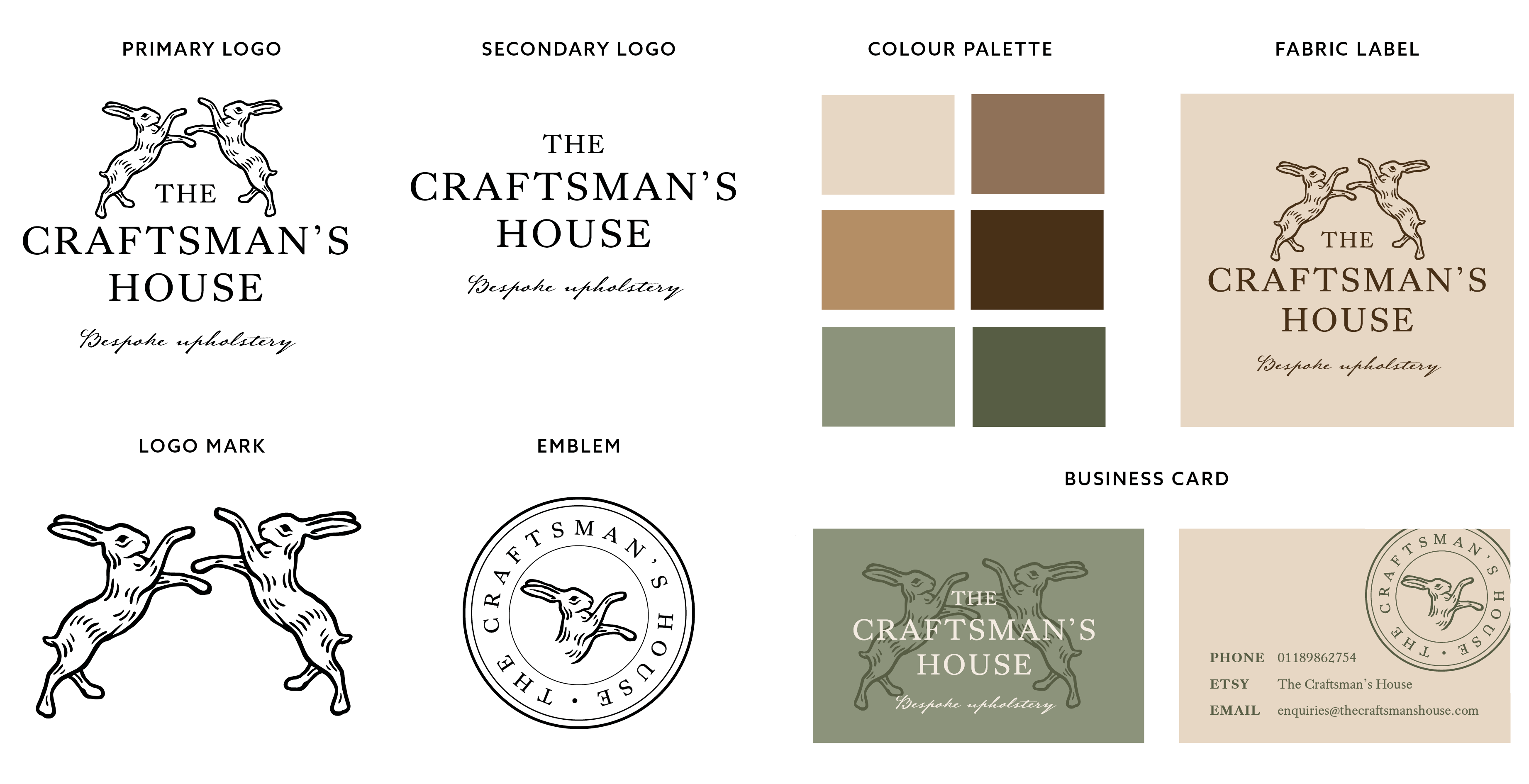 Creating flexible brand assets was critical to the restated brief, as these would be applicable when launching The Craftsman’s House via an Etsy shop, and later an online store. Furthermore, the branding assets would ideally be applicable to other print and digital spaces as the business grows, such as social media posts, letterheads, etc.