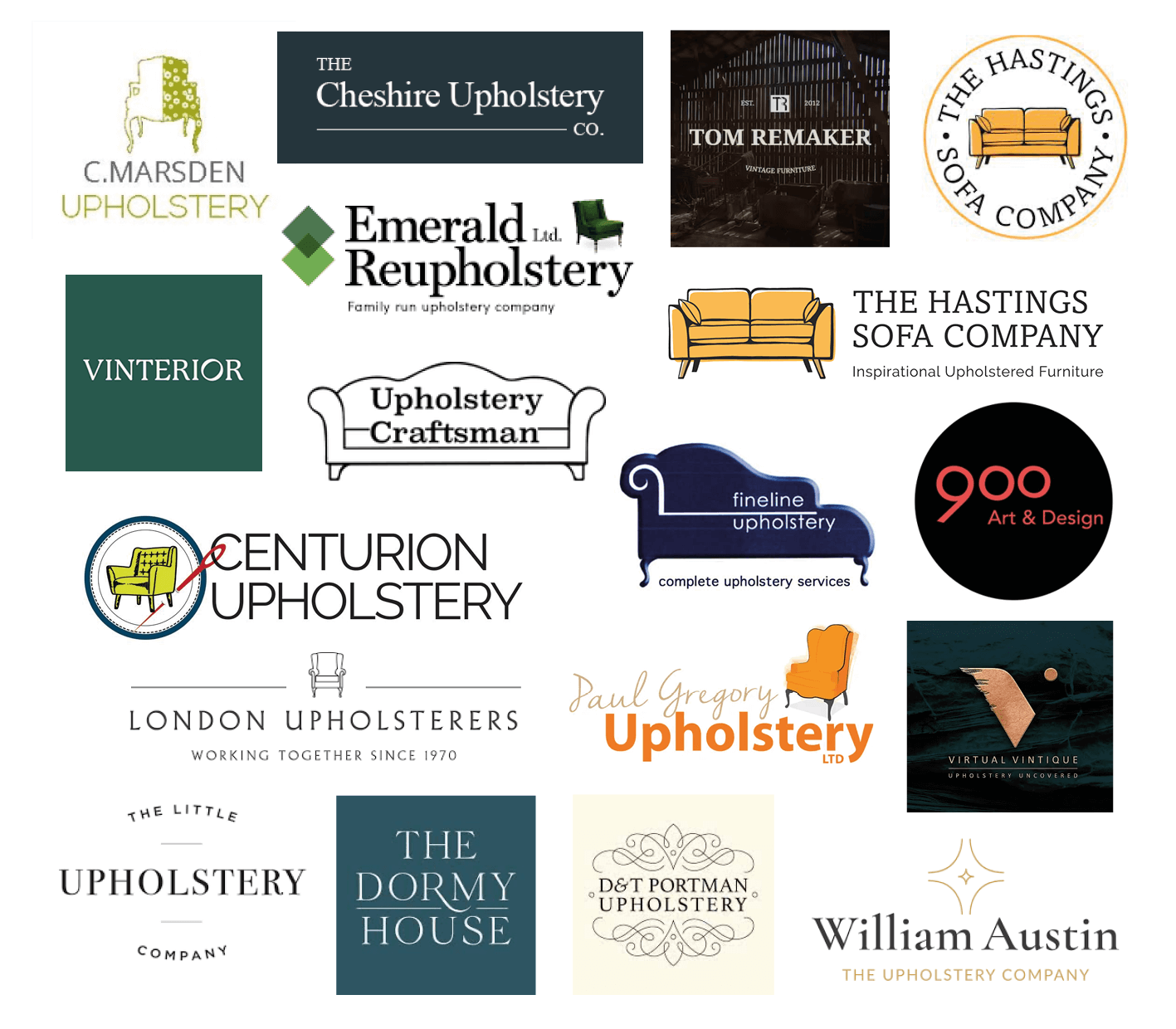 (Above) A selection of competitor logo designs , which often lack illustration or rely heavily on sofa and armchair imagery
