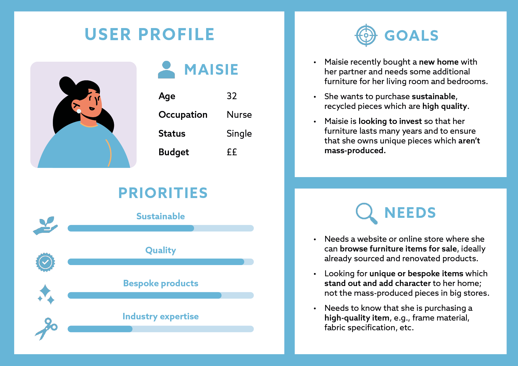 (Above) Three user personas developed to identify user needs
