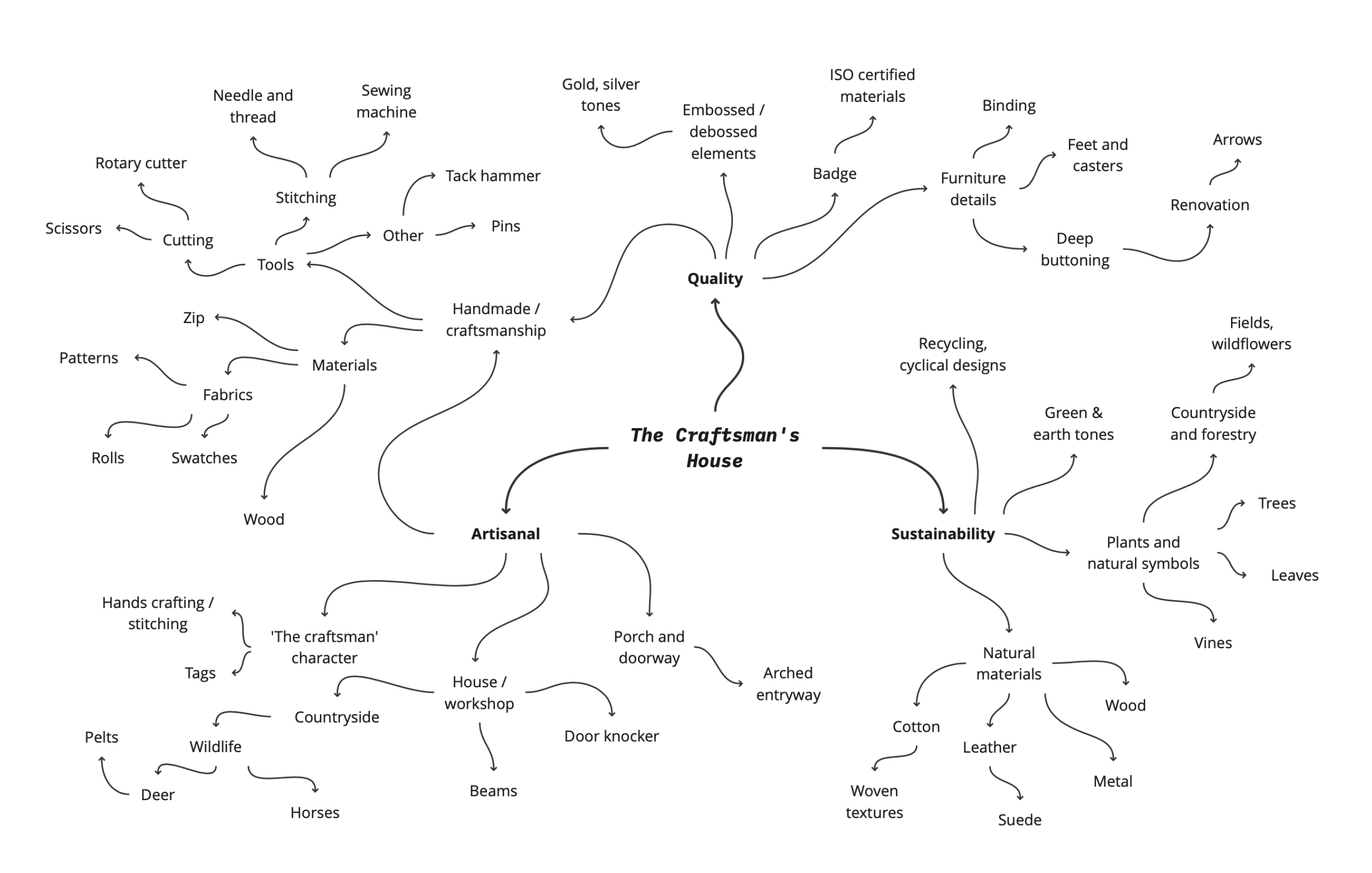 To avoid the typical chair and sofa logos on the market, I created a mind map of different symbols that could reflect the industry and brand values of The Craftsman’s House.