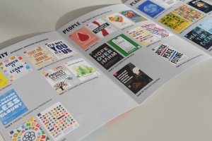 Initially, we looked at what the previous year did with their Global Goals exhibition. This was a necessary precaution since it prevented us from copying their concept and helped us identify their successful, and perhaps less successful components. Additionally, we looked at similar student showcases, identifying presentation methods of both artwork and corresponding copy within captions.