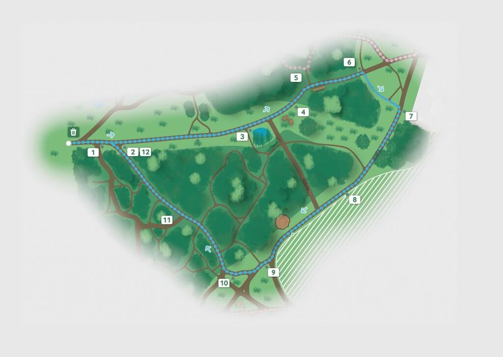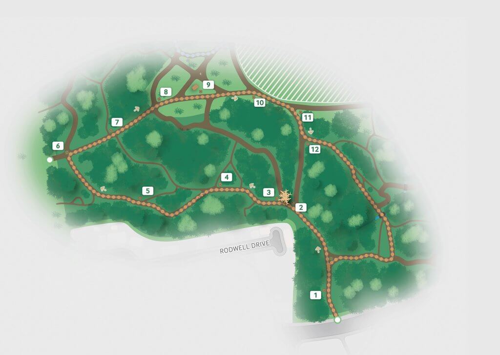 We revisited the site once again to plot the three trails that appear on the map – the ‘Wild Walk’, ‘History Hike’ and ‘Memory Lane’