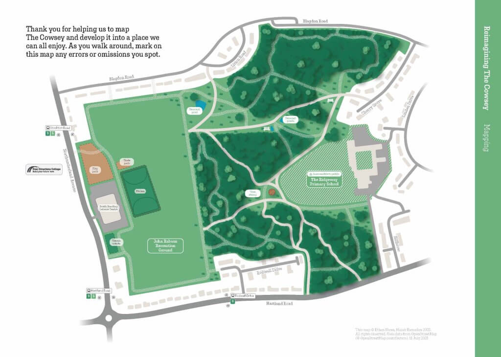 We revisited the Cowsey after feedback to plot all the paths that were missing as a result of feedback from the students and staff of the New Directions College. (see Research and Mapping)