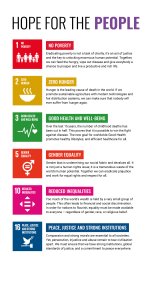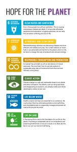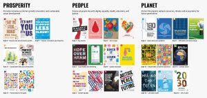 We decided to group our responses into three categories – Prosperity, People and Planet. The first category, Prosperity, highlights the goals that strive for innovation and new global opportunities. The second category, People, looks at the human population and how their lives are impacted by worldwide issues. The third and final category, Planet, shines a light on the goals that express a concern for maintaining natural resources and Earth’s environments. To introduce these sub-categories, large panels were created to highlight the further aims of each goal. We experimented with no tetris, tetris on the bottom, and finally came to a unanimous decision of presenting a tetris pattern on the top that utilises the colours of the goals involved.