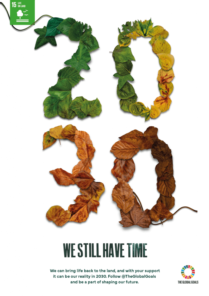 This poster communicates a sense of hope and urgency, reminding audiences that there is still time to take action. The visual of dying leaves is used to evoke emotion and inspire students to get involved, showing that even small actions can make a big difference. Outcomes are printed on Cyclus, 100% recycled paper, aligning the production process with Goal 15 itself. This reinforces the idea that considered design choices can contribute to a more sustainable future.