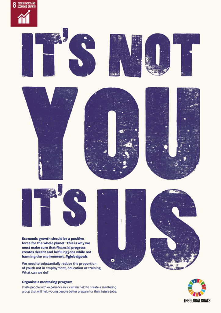 Encouraging all audiences to take action by helping the youth gain skills for the workplace, the phrase, it’s not you, it’s us, shifts pressure from young people to those with power. The call to action promotes mentoring programmes as a direct solution. Letterpress printing adds a textured, humanised quality that emphasises support over criticism, giving the poster a sense of hope. Bold typography reflects the weight of employers’ words, while minimal colour and scale evoke the urgency of protest posters.